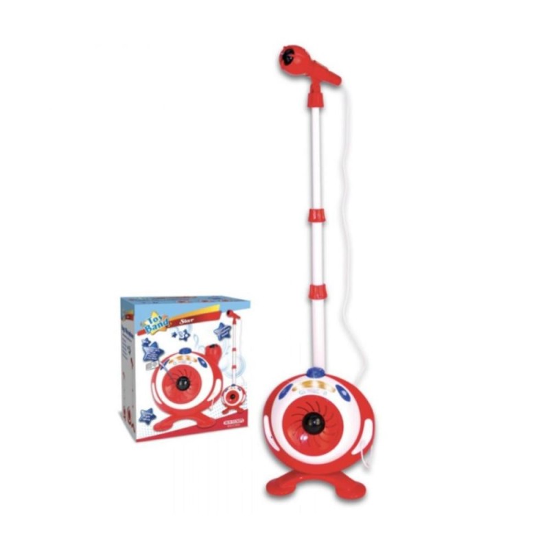 Microphone Bontempi 422040, pour enfants avec pied réglable, amplificateur intégré, effets lumineux et connexion MP3. Parfait pour initier les petits à la musique dès 3 ans.