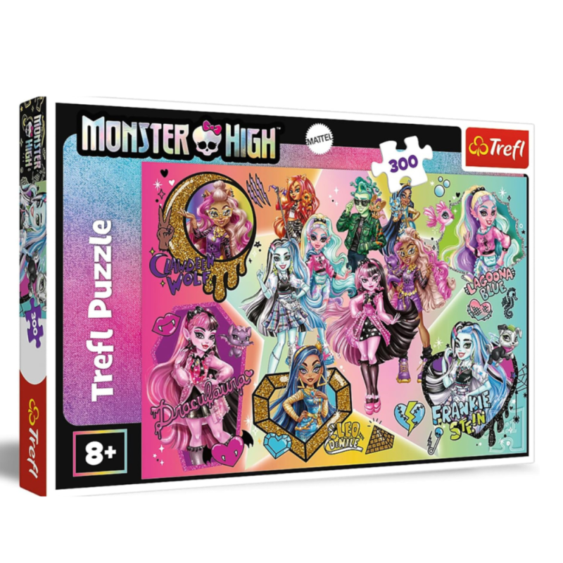 Puzzles 300 Zombies on top 23027 – Trefl : Ce puzzle de 300 pièces permet de reconstituer une grande image de 60 x 40 cm mettant en scène les célèbres poupées Monster High.. Les couleurs vives et les formes adaptées attirent l’attention des enfants et les incitent à jouer. Ludique et éducatif, il stimule l’imagination, la concentration et la confiance en soi. Conçu pour différents âges. Fabriqué avec des matériaux sûrs et naturels de haute qualité.